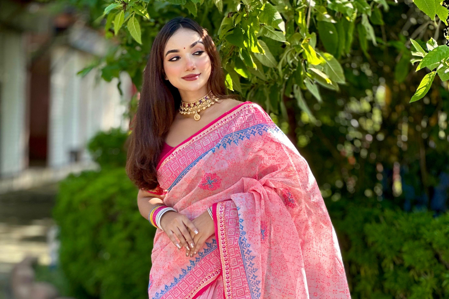 Delivery charges vary based on your location. If you are located inside Dhaka city, the delivery fee is 80 TK. For outside Dhaka locations, the delivery fee is 150 TK. We ensure safe and secure delivery of your sarees at a minimal cost!